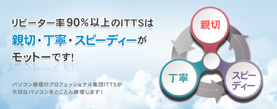パソコン修理、復旧ITTSは、初めてのお客様にご安心いただける親切丁寧サポートを心がけています。